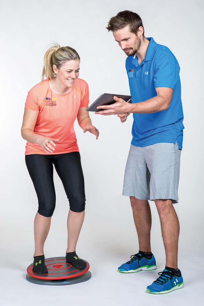 Die mehrachsige patentierte (EU-Patent Nr. 2081651) Plattform ermöglicht ein Training für alle Leistungslevel und Altersstufen. Der eingebaute Bewegungssensor überträgt per Bluetooth 4.0 und kostenfreier App an die Endgeräte. Die stabile Bodenplatte und Standplatte mit einem Antirutschbelag an der Oberfläche geben die notwendige Sicherheit.