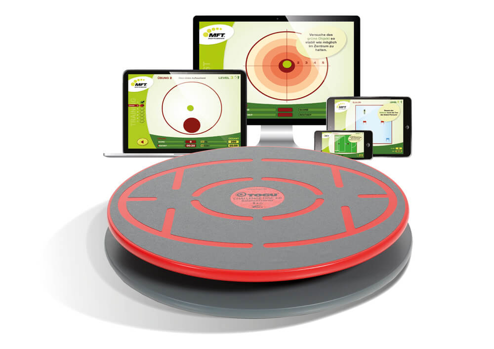 Die Anwender trainieren mit der Challenge Disc selbständig. Sie sind motiviert, ohne dass ein Trainer kontrollieren und Anweisungen geben muss. Die Bodyteamwork App übernimmt diese Aufgabe des Coachings und ermöglicht ein gezieltes Koordinationstraining für die unteren Extremitäten, Rücken und Rumpf.
