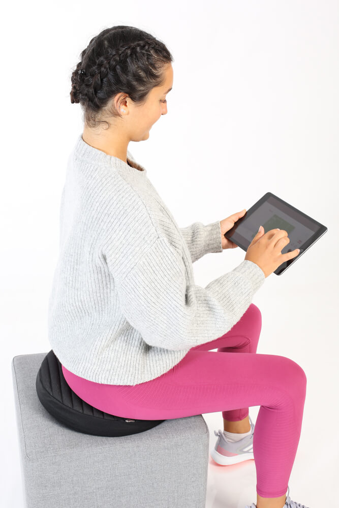 Die Anwender trainieren mit BalanceSensor Dynair selbständig. Sie sind motiviert, ohne dass ein Trainer kontrollieren und Anweisungen geben muss. Die BalanceSensor App übernimmt die Aufgabe des Coachings und ermöglicht ein gezieltes Koordinations- und Stabilisationstraining für den ganzen Körper. Während des aktiv-dynamischen Sitzens auf dem Dynair Ballkissen wird vor allem die autochthone tieferliegende Muskulatur an der Wirbelsäule aktiviert. Das Trainingsgerät und die App sind einfach in der Handhabung und überall einsetzbar, im Büro, im Studio, zu Hause oder auf Reisen.