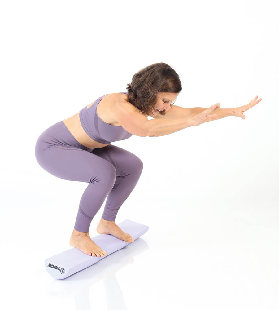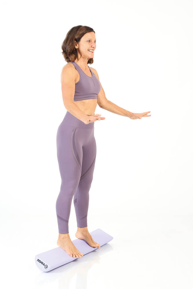 Übrigens: Der propriozeptive Input über die Fußsohle als direkter Kontakt zur Halbrolle verbessert deine Performance. Deshalb: Schuhe ausziehen und barfuß trainieren!