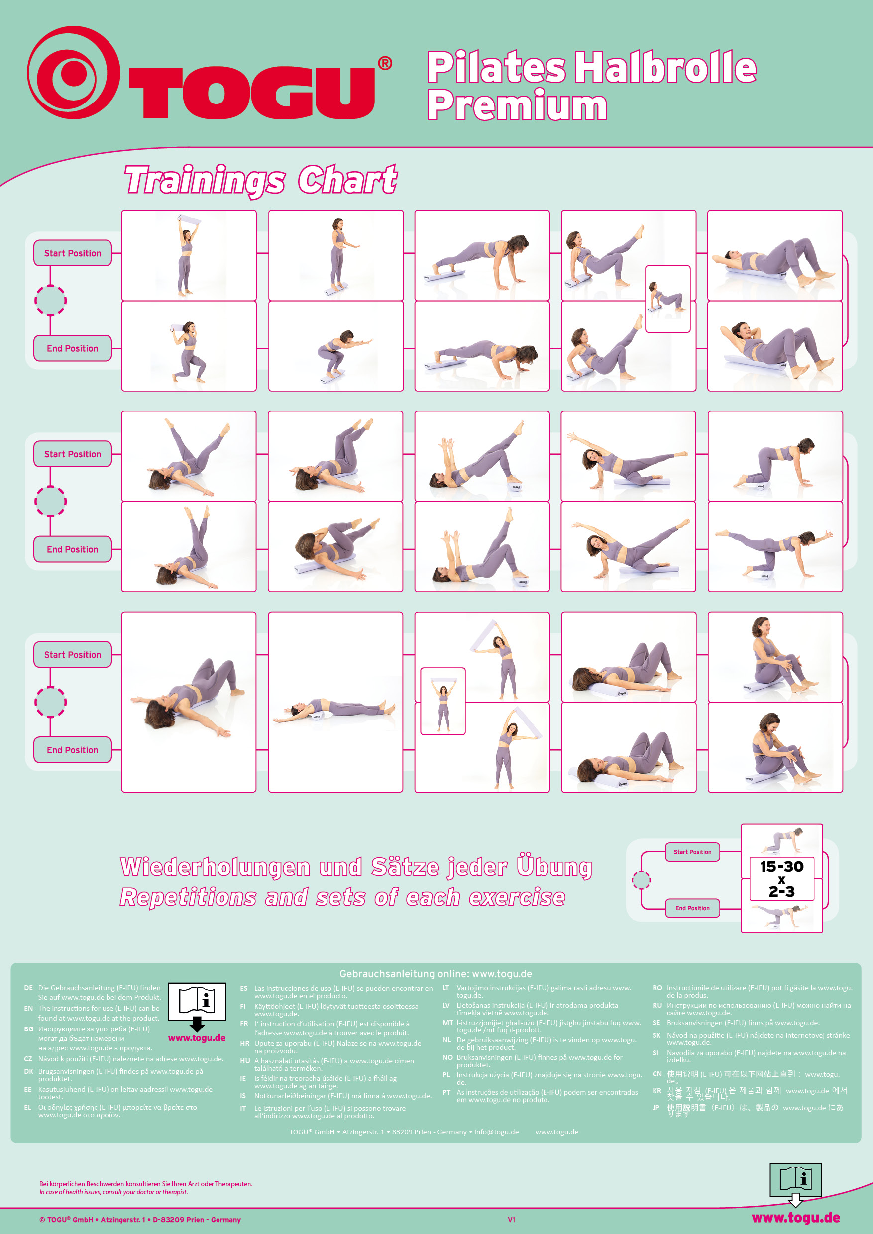Die TOGU Pilates Rolle wurde entwickelt für das Gleichgewichts-, Muskel- und Haltungstraining, für die Wirbelsäulenstabilisierung, die Förderung des Körperbewusstseins und der Koordination sowie für Dehn- und Kräftigungsübungen. Eine ausführliche Übungsanleitung liegt bei.