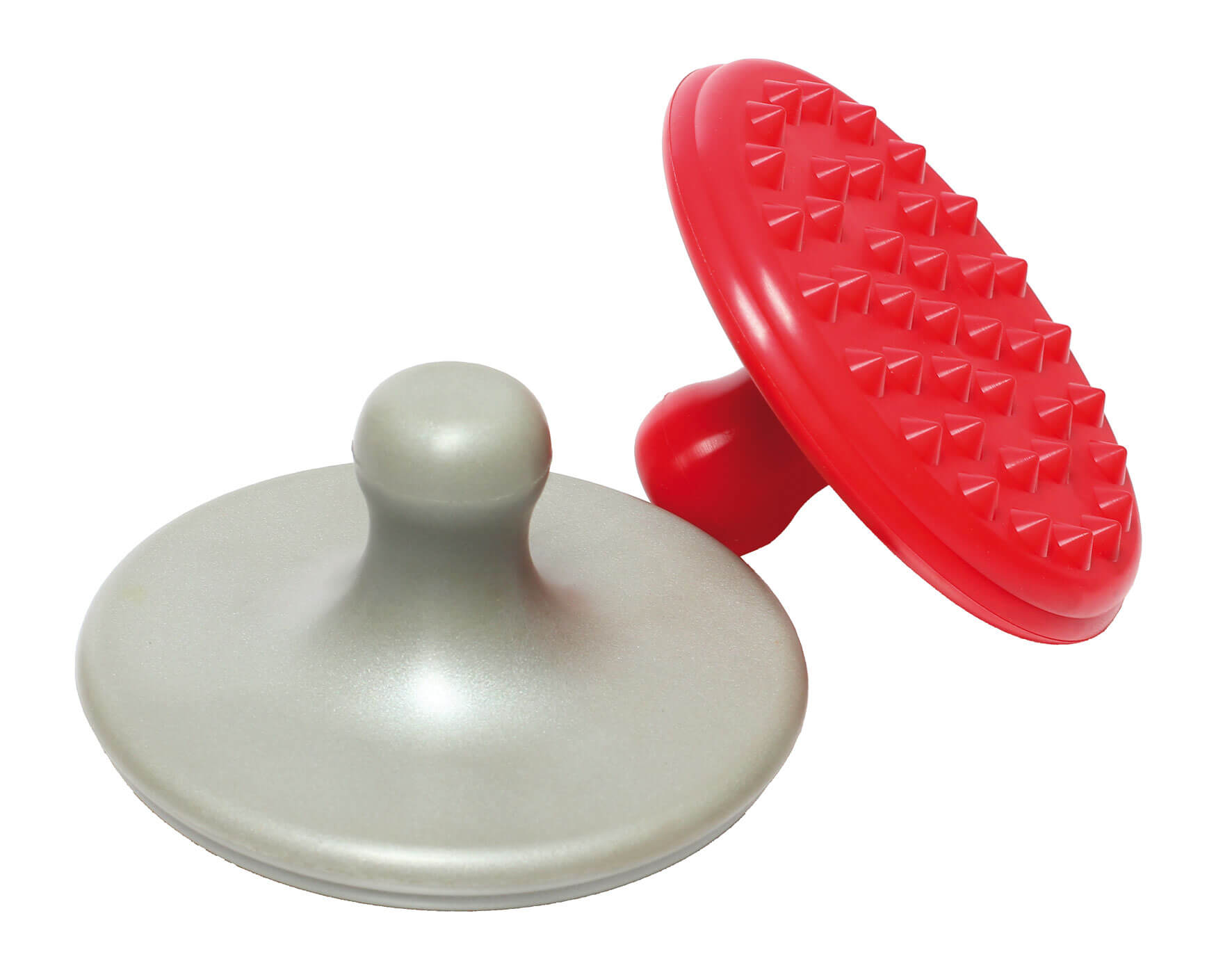 Mit der genoppten Seite wird massiert. Dabei dient der Griff zur Druckregulierung und für einen besseren Halt während der Benutzung. Das Massage Pad verteilt die Druckenergie großflächig und wirkt somit vor allem auf das Bindegewebe. Die angenehmen weichen Noppen unterstützen dabei auch die Durchblutung. Das Gerät ist sehr hygienisch da es sich problemlos abwaschen lässt.