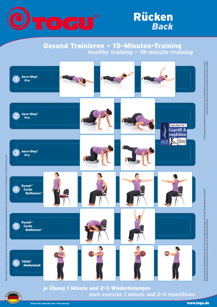 Kräftigungsübungen stärken die Rückenmuskulatur und Bewegung entlastet die Bandscheiben und fördert die Durchblutung. Durch den Einsatz des Rücken Geräte-Sets werden die sensomotorischen Trainingsreize noch intensiviert. Die Sensomotorik ist vereinfacht gesagt das Zusammenspiel zwischen sensorischen (z.B. Nervenbahnen) und motorischen (z.B. Muskulatur, Sehnen, Bänder ) Leistungen des Körpers. Sie trainieren auf den luftgefüllten und dadurch instabilen Unterlagen von TOGU also nicht nur Ihre Gleichgewichtsfähigkeit, sondern ganz nebenbei und unbewusst auch Ihr Nervensystem und die tieferliegende Muskulatur um die Wirbelsäule, die für die Stabilität sorgt.