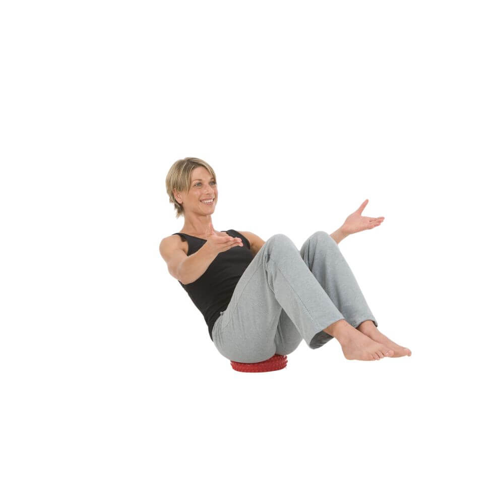 Eine luftgefüllte Halbkugel - made in Germany - aus Ruton mit angenehmen Noppen und einem Nadelventil zur Luftregulierung. Das Material Ruton ist geruchsneutral und sehr belastbar (bis 200kg), es ist latexfrei und besteht aus 100 % recyclingfähigem Kunststoff.