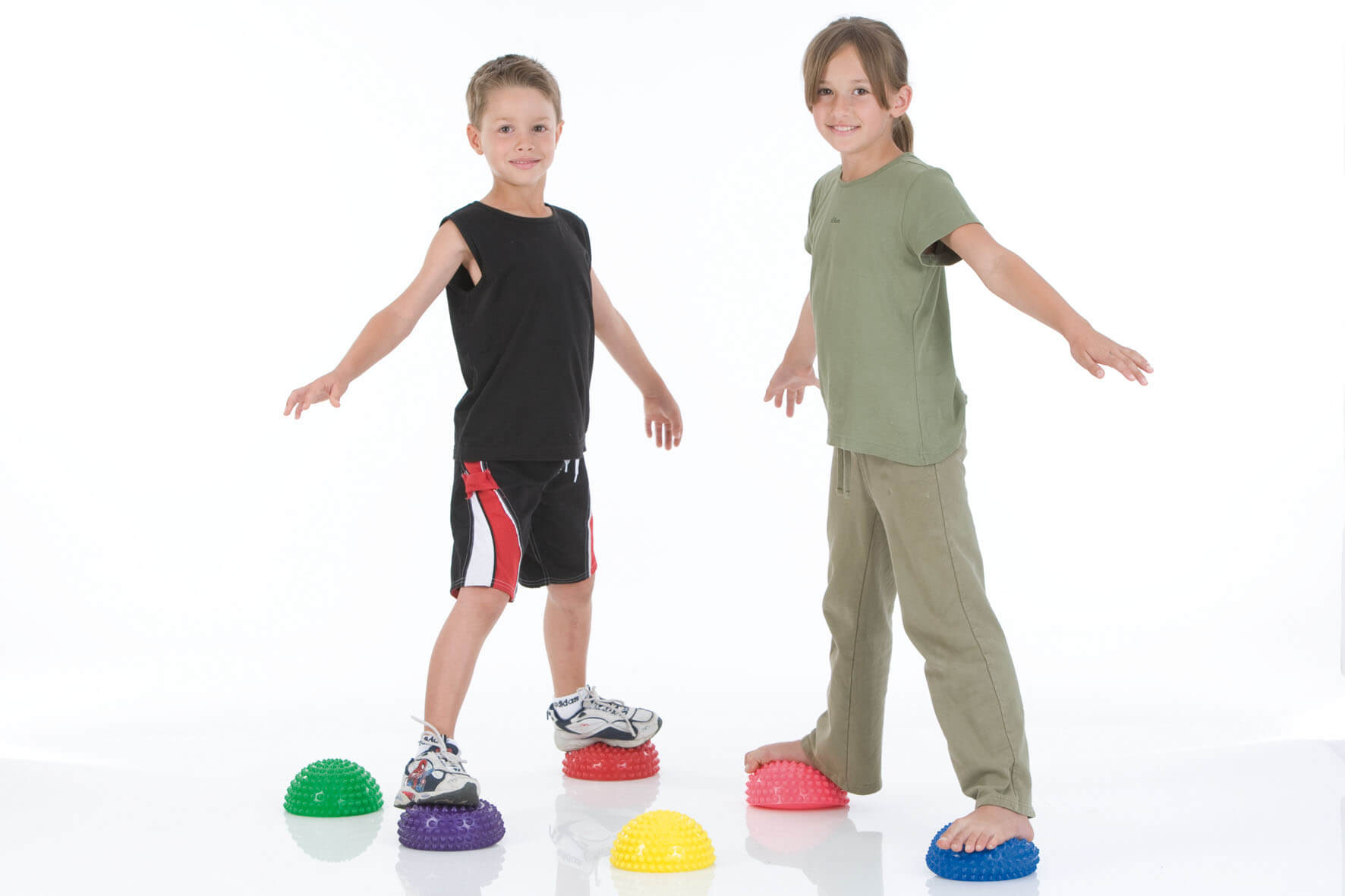 Koordination, Balancegefühl, Beweglichkeit und Körperwahrnehmung werden bei Groß und Klein durch die instabile Unterlage gefördert. Speziell das Sprunggelenk und Fußgewölbe wird trainiert, insbesondere im Bereich des Fuß- und Beinachsentrainings. Bei Kindern sorgt das Beinachsentrainer-Set für Freude an der Bewegung und hilft Langeweile zu vermeiden.