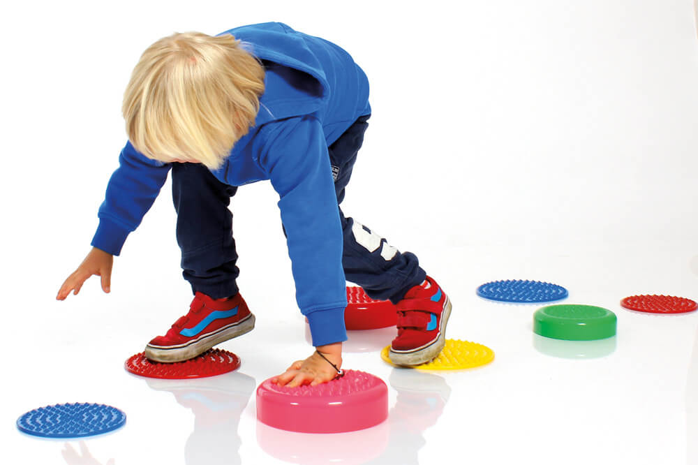 Dieses Senso Kissen Set vervollständigt die Produktfamilie Senso Balance. Neu ist der verbesserte Kontakt zum Boden. Mithilfe der Luftfüllung entsteht eine instabile Unterlage. Beim Auftreten müssen die gelenkumspielenden Muskeln die wackelige Unterlage kompensieren und werden dadurch gestärkt. Die speziellen Senso-Noppen stellen eine ideale Anregung der propriozeptiven Sinne dar und eignen sich besonders gut für sämtliche Gang- und Trittübungen.